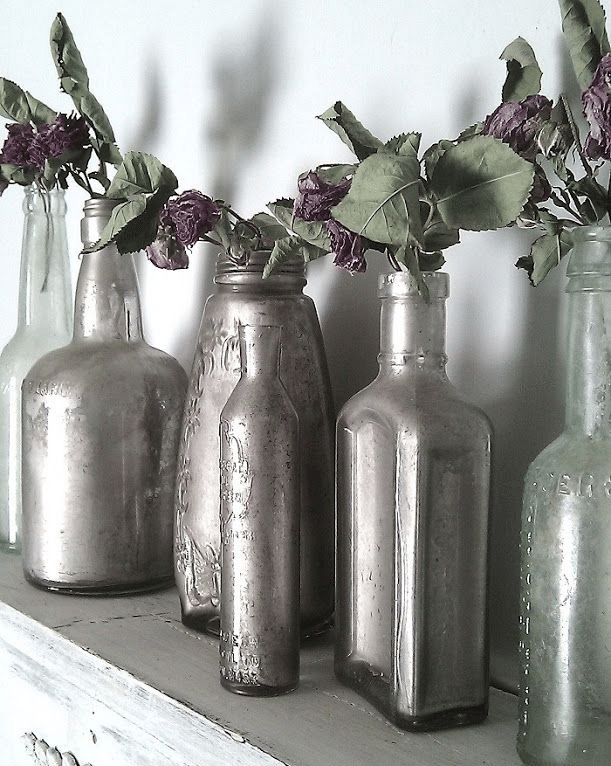 A faux mercury finish can be given to old wine bottles by painting them with metallic accents. Make sure that you spray the vinegar and water mixture in your bottles with a light coat of mirror finish spray once the bottle has been painted.