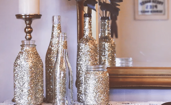 Glitter paint on bottles can completely transform the appearance of wine bottles. You can place these bottles in a corner of a room and let these pieces be the focal point.