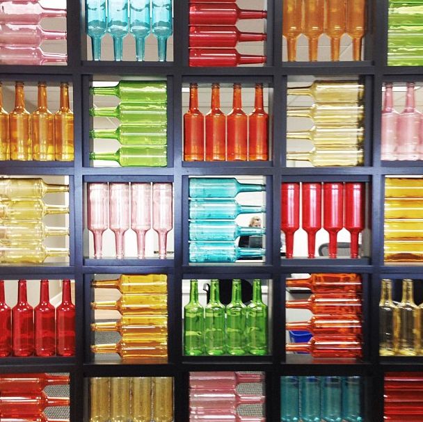 7. Rainbow Wine Bottle Wall