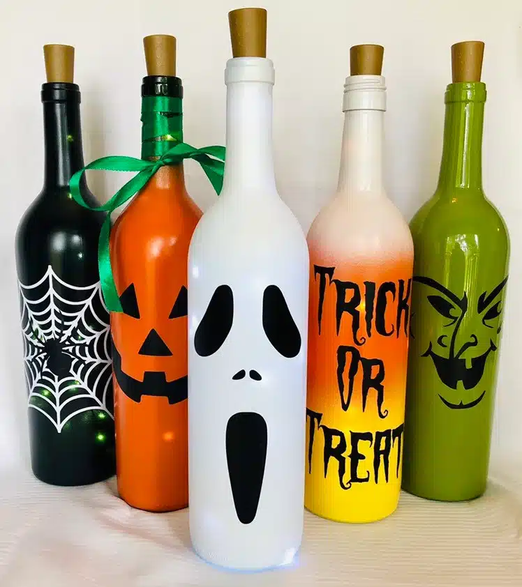 31. Wine Bottle Halloween Decor