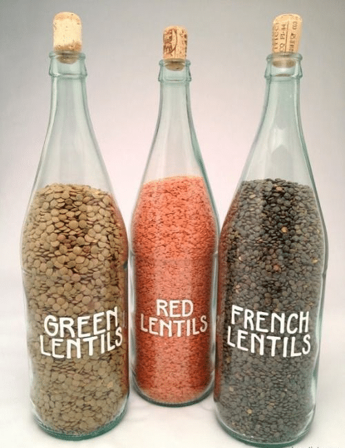Wine bottles are excellent for storage as they are practical and can make your space look neat as well as organized.