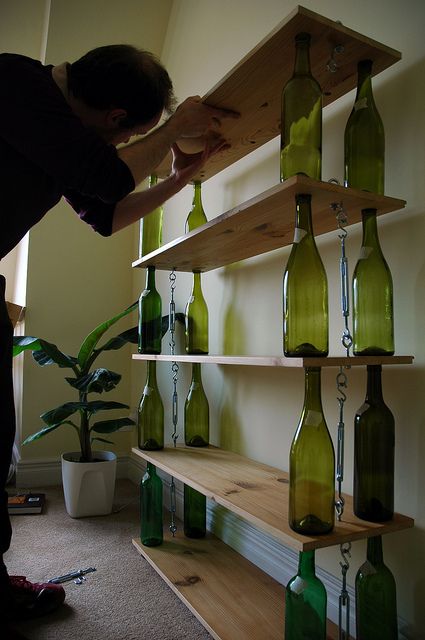 18. Wine Bottles as Shelf Holders