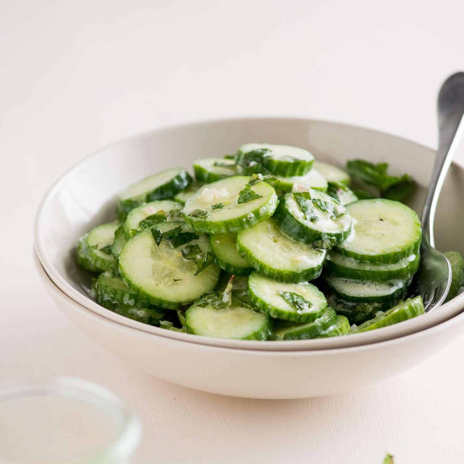 Cucumber and mint salad, with its cool and refreshing flavors, is a light and healthy side dish that pairs well with Greek lamb.