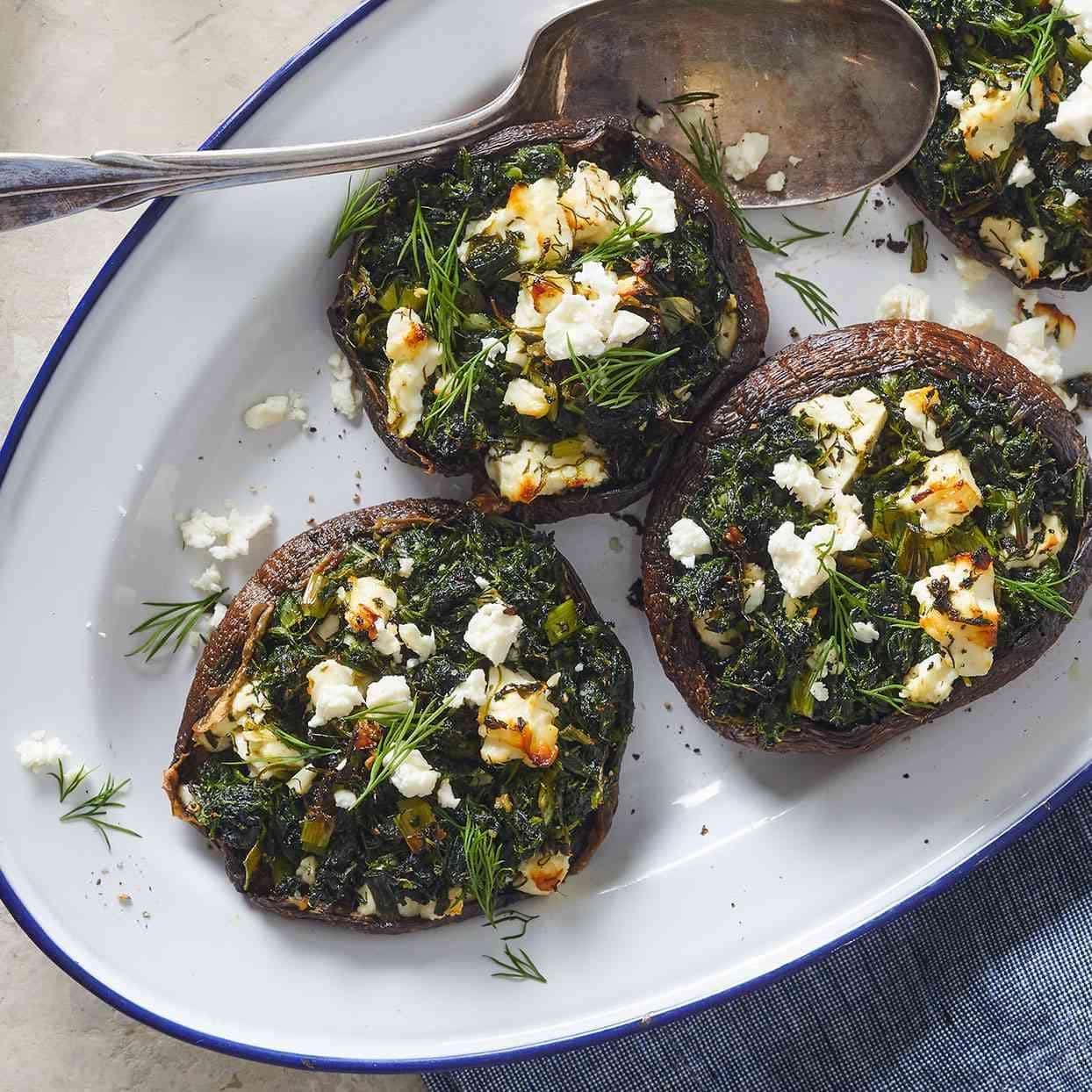 Spinach and feta stuffed mushrooms, with their savory and tangy filling, are a delicious side dish for Greek lamb.