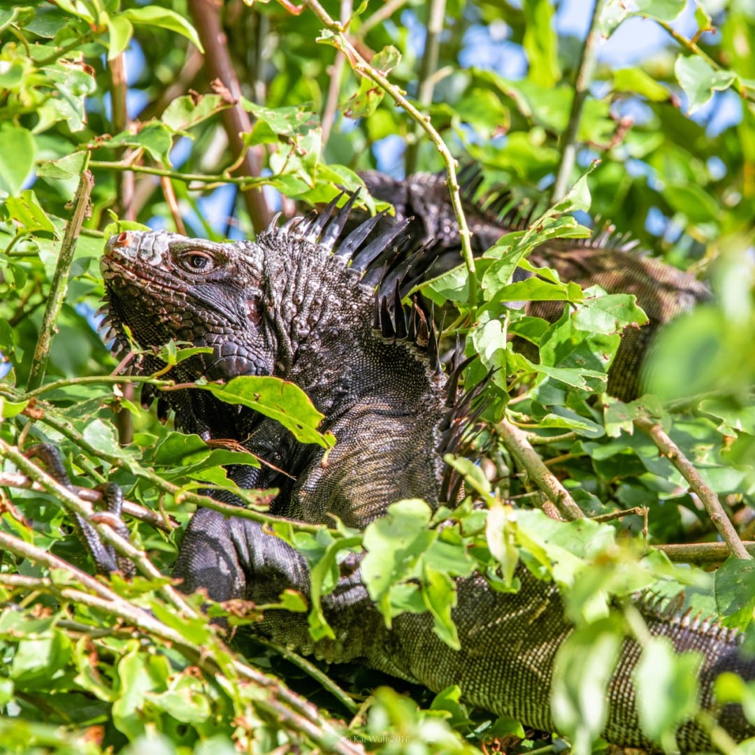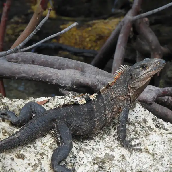 The iguana is primarily herbivorous and inhabits mangroves and coastal areas.