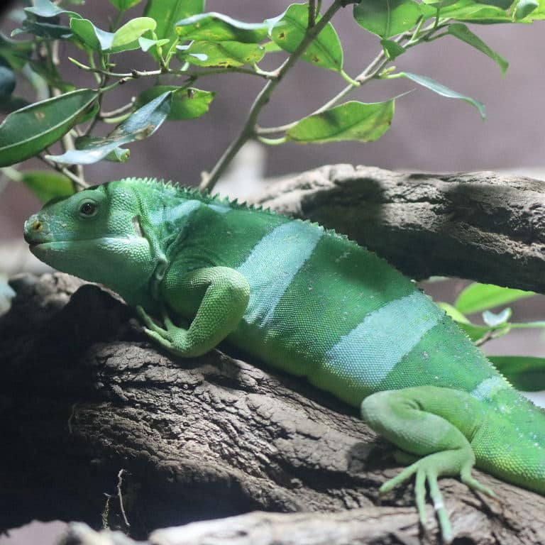 The Fiji Banded Iguana is a vibrant species native to the islands of Fiji.