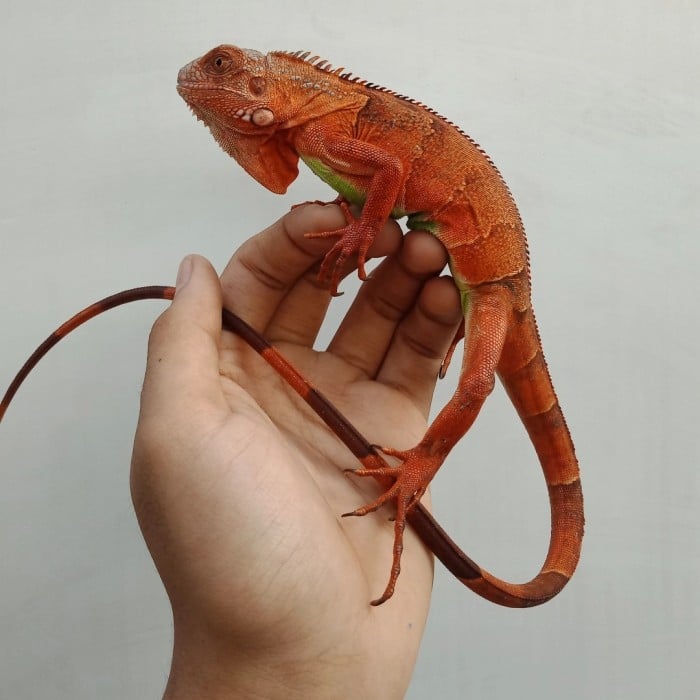 Red Iguanas are a color morph of the Green Iguana, known for their striking red or orange hues.