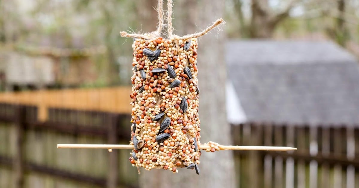 Cardboard boxes of various shapes and sizes can be used to make bird feeders. Your child can make simple ones by taking an open cardboard box and filling it with seeds for the birds.