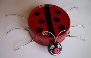 To get the best out of waste, take old bottle plastic lids and make your kid color them. If your child is comfortable with painting, use acrylic paints for an opaque finish and make your own ladybugs.