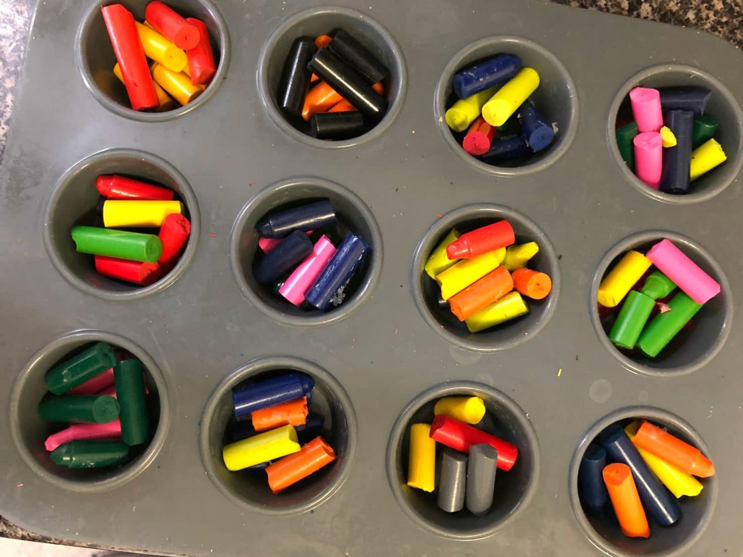 Old crayons can be used to make new ones. Collect all the crayons that have been declared useless by your kid and melt them in the oven using a cupcake baking tray. You will be left with a ball of oily coloring material. You can either let it be as it is or involve your kid in making new small balls of color.