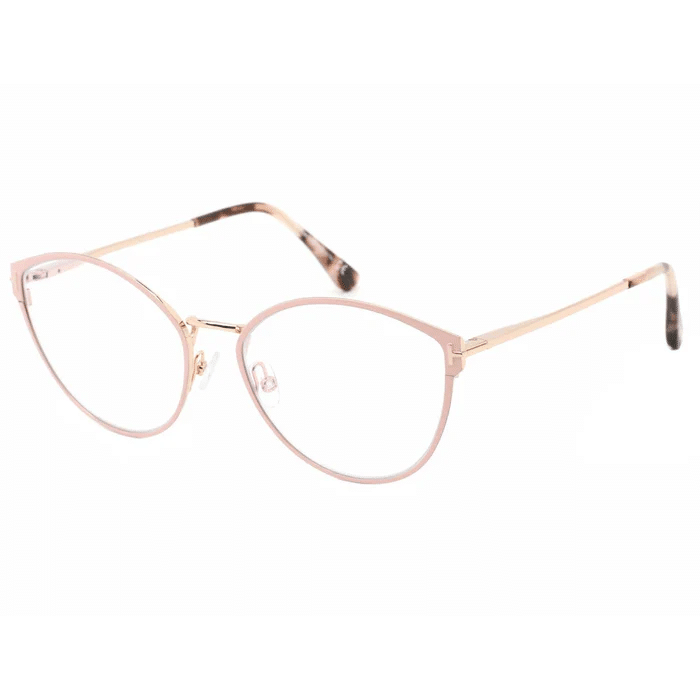 Tom Ford FT5573-B 072 women’s eyeglasses are crafted from a pink metal frame with a full-rim cat-eye shape.