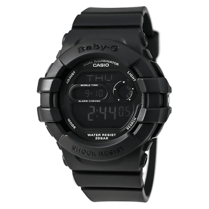 The Casio BGD140-1A Baby-G women’s watch features a fixed bezel and smooth function buttons.