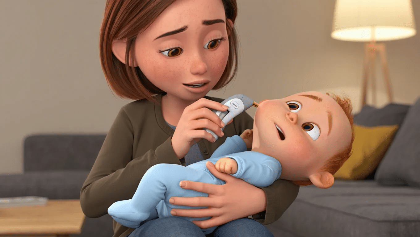 Call your doctor immediately if your baby’s temperature exceeds 100.4°F (38°C) for infants under 3 months, shows signs of dehydration, appears extremely irritable or lethargic, or if symptoms worsen despite home care.