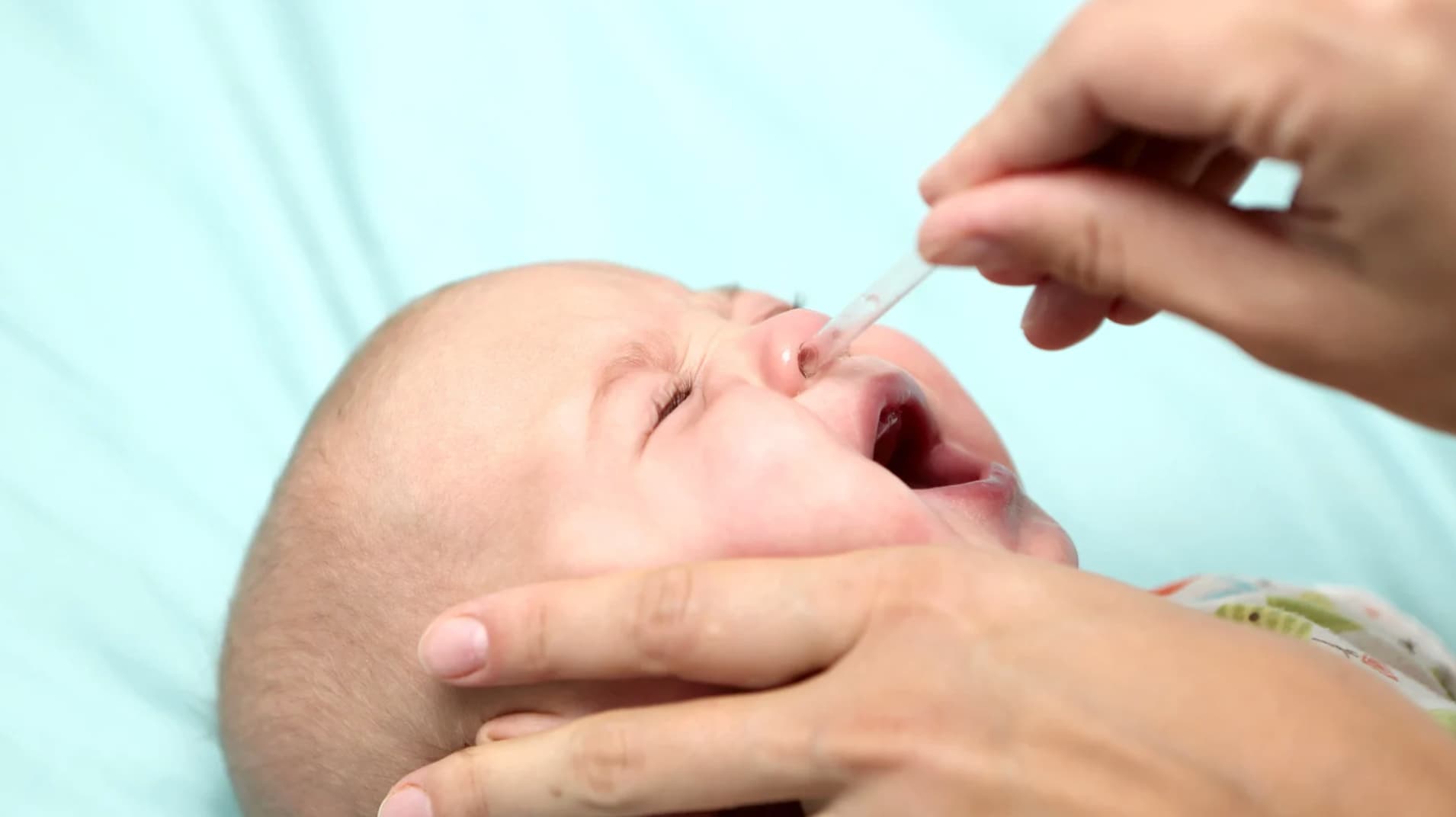 Saline drops help thin thick mucus so it’s easier to remove. Add one or two drops per nostril, wait briefly, then gently suction.