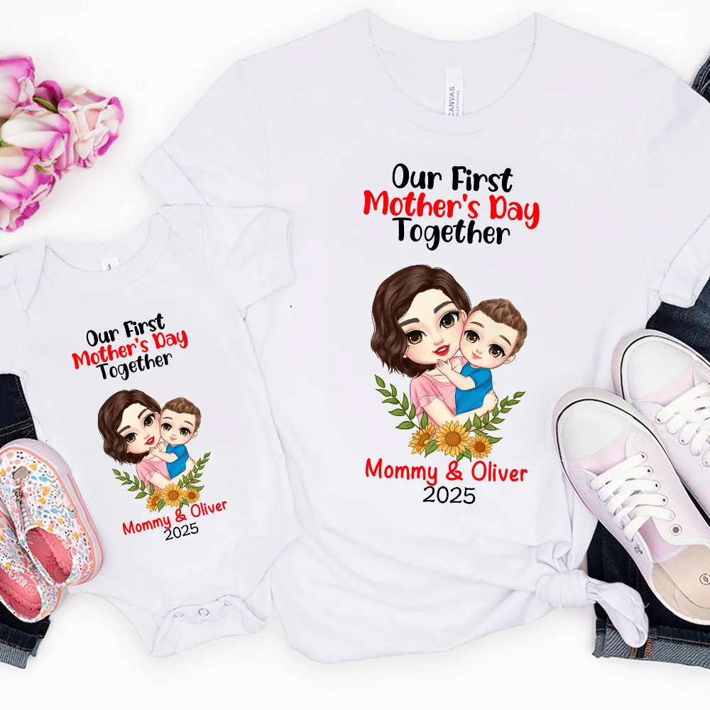 - Get a cute mother and child matching t-shirt set that she can wear with her little one.