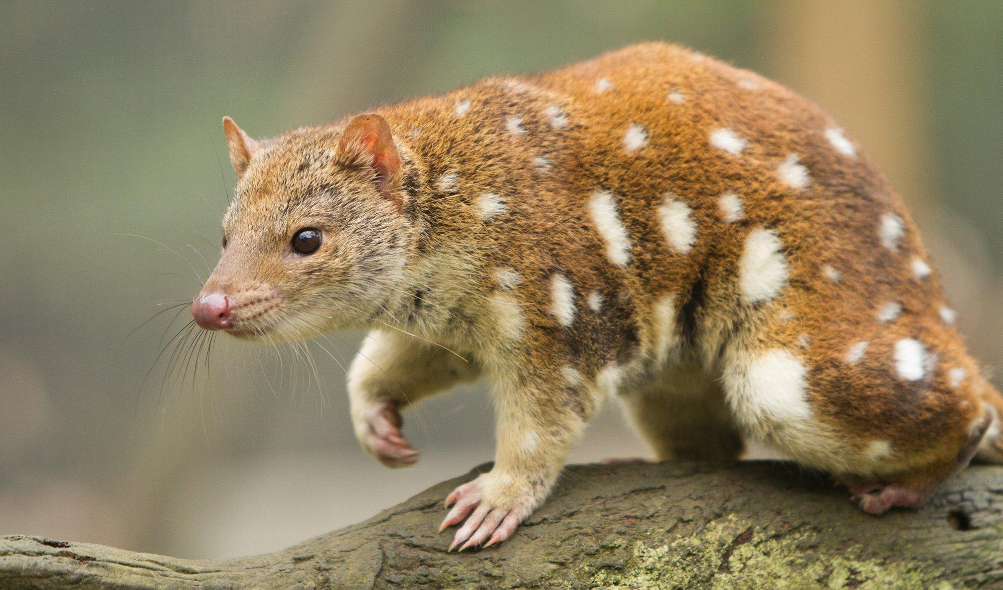 The quoll is a carnivorous marsupial native to Australia and New Guinea, characterized by its distinctive spotted coat, which resembles a combination of a cat and a ferret.