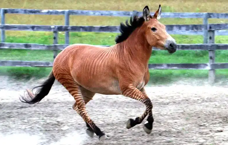 A zorse is a hybrid between a zebra and a horse, often possessing a zebra’s stripes and a horse’s body structure. They are known for their strength and agility.