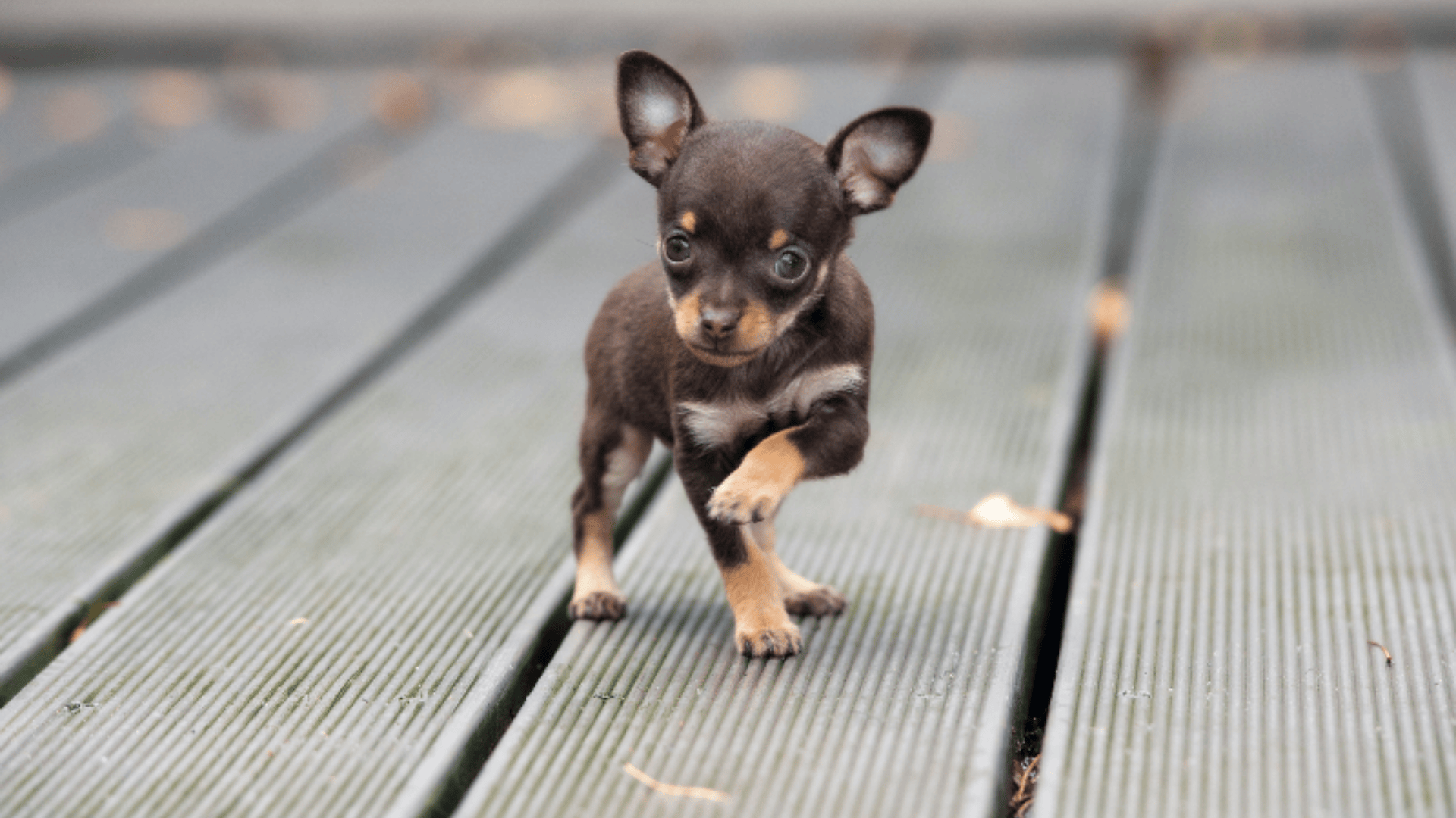 A miniature version of the standard Chihuahua, with big round eyes and a compact frame under 5 pounds.