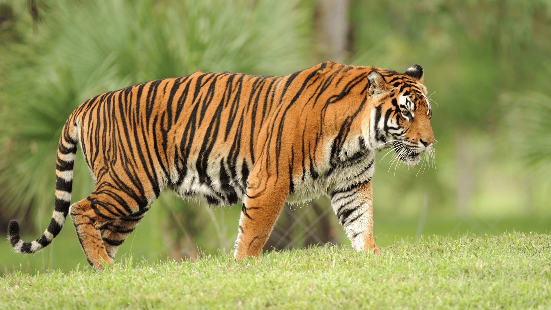 Tigers are excellent swimmers and enjoy water, unlike most big cats. Each tiger’s stripe pattern is unique, serving as a form of camouflage and identification.
