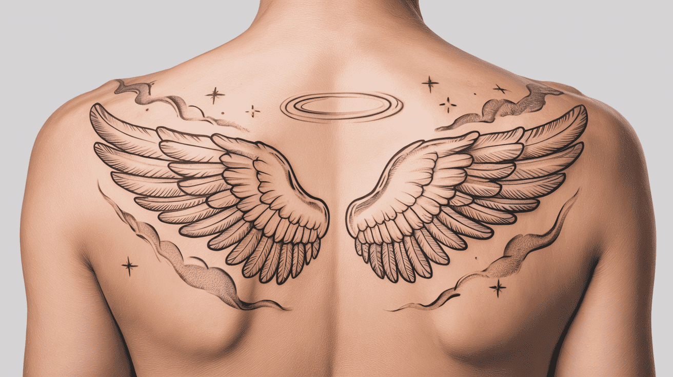 Style type: Realistic feathers, fine-line wings, or ethereal elements.