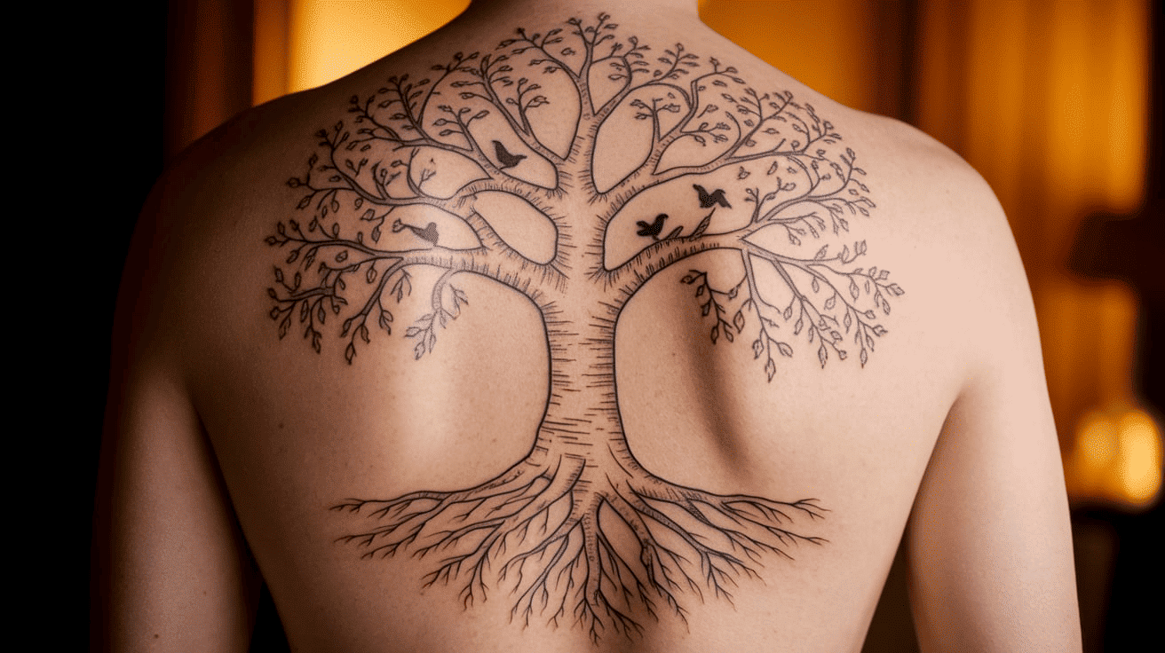 Symbolizing roots, growth, and ancestry, family tree tattoos represent the foundational role your parents play in your life.