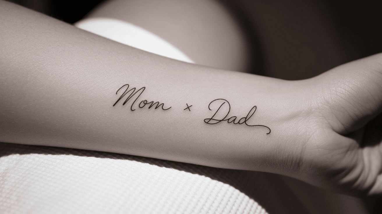 A direct and emotional connection, this tattoo recreates your parents’ unique handwriting, turning something simple into a deeply personal tribute.