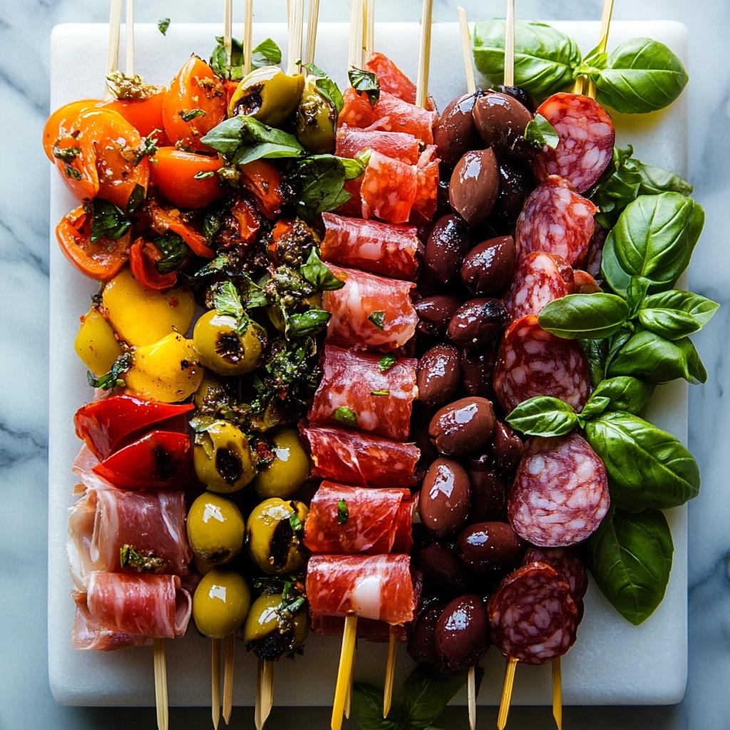 - Flavor Profile: A mix of salty meats, marinated vegetables, and cheeses, skewered for a savory, bite-sized treat.