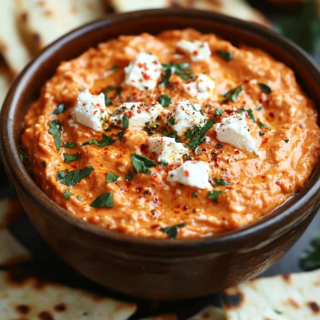 - Flavor Profile: Creamy feta and roasted red peppers blended into a smooth, flavorful dip with a hint of tanginess.