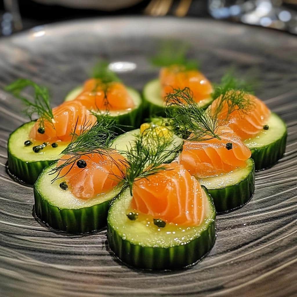 - Flavor Profile: Fresh, crisp cucumber topped with silky, smoky salmon, and a hint of citrus.