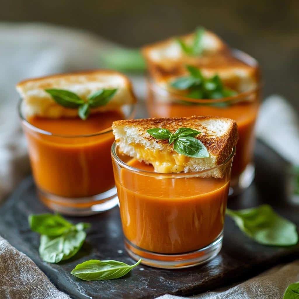 37. Tomato Basil Soup Shots with Grilled Cheese