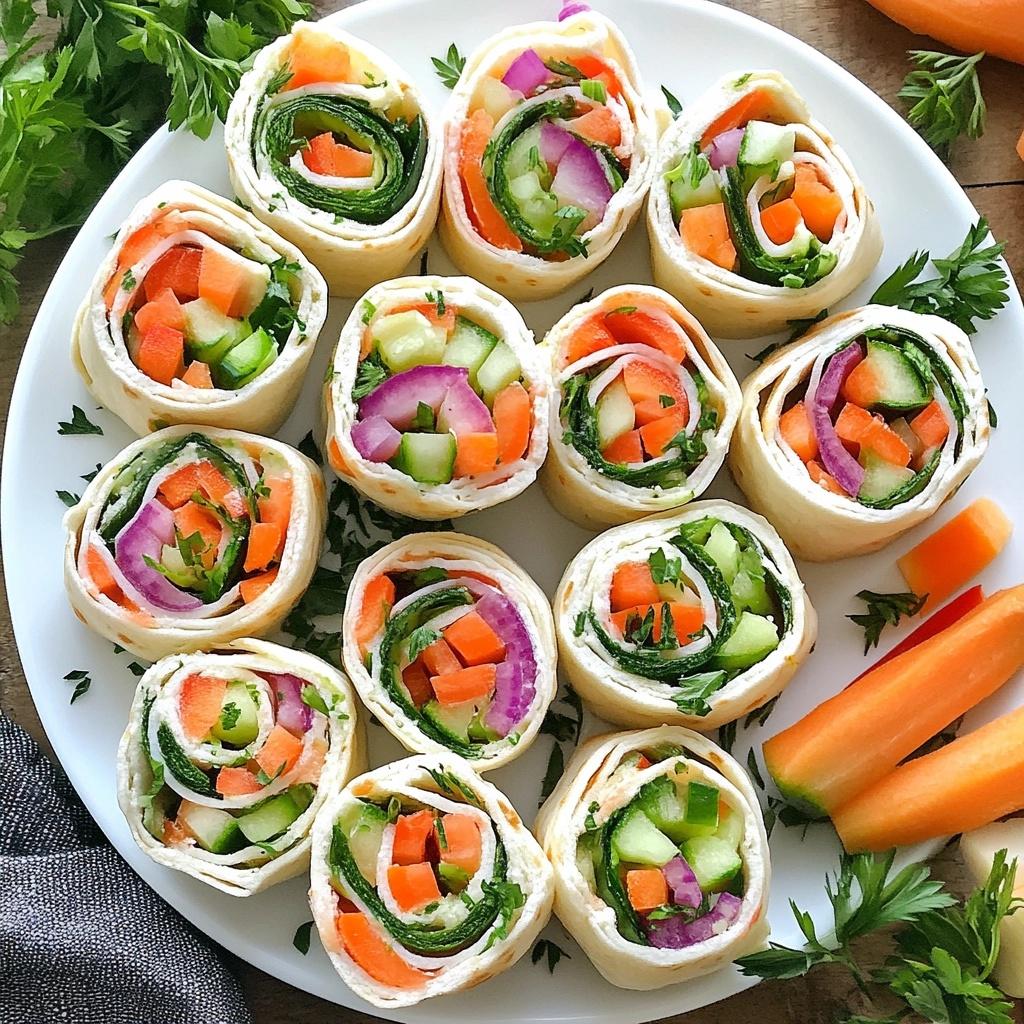 - Flavor Profile: Fresh veggies, cream cheese, and herbs wrapped in a soft tortilla for a light, crunchy bite.