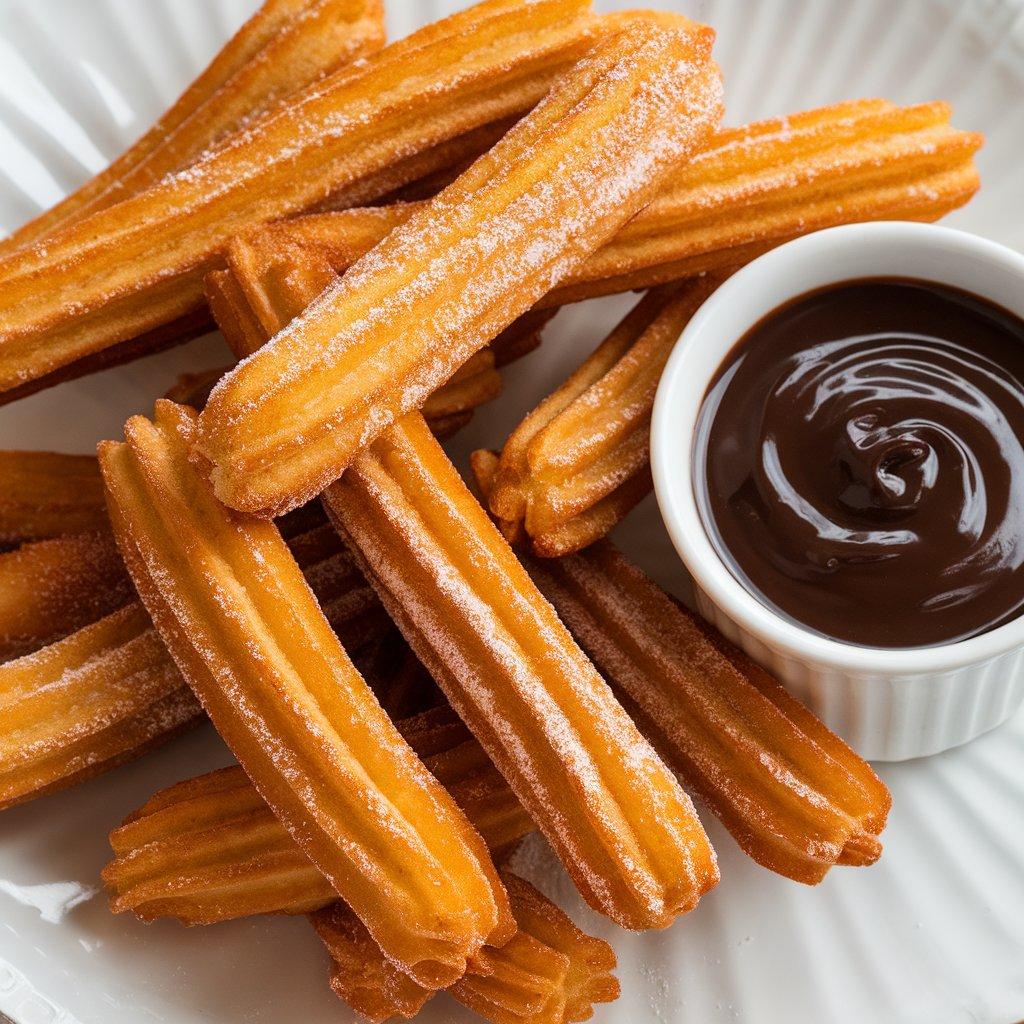 • Serving Style: Churros are typically served in long sticks, dusted with sugar or cinnamon, and accompanied by a cup of thick, warm chocolate sauce for dipping.