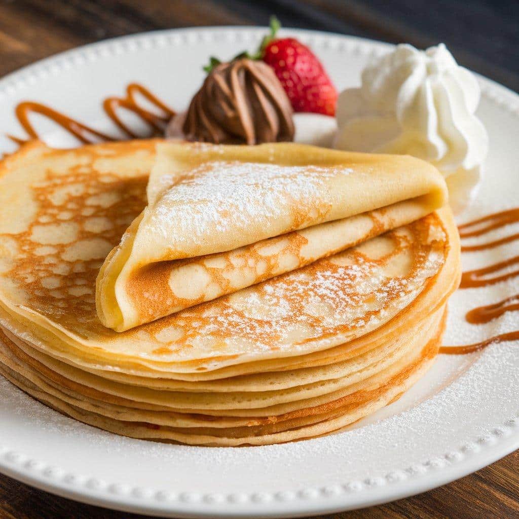 • Serving Style: Crêpes are typically folded into triangles or rolled into cones. Sweet crêpes might be dusted with powdered sugar or drizzled with syrup, while savory ones are filled with rich ingredients.