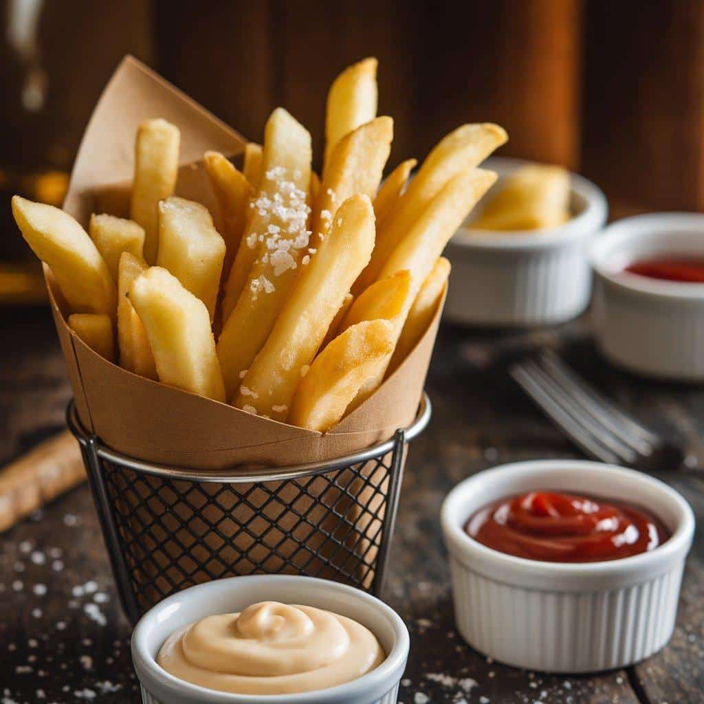 • Serving Style: Frites are typically served in a generous portion, often in paper cones or baskets, and accompanied by mayonnaise or ketchup for dipping.
