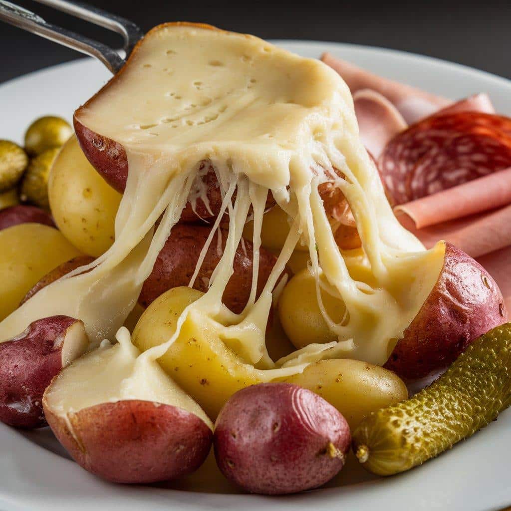 • Serving Style: The melted cheese is scraped onto the plate over potatoes, meats, and pickles, often enjoyed with a glass of white wine.