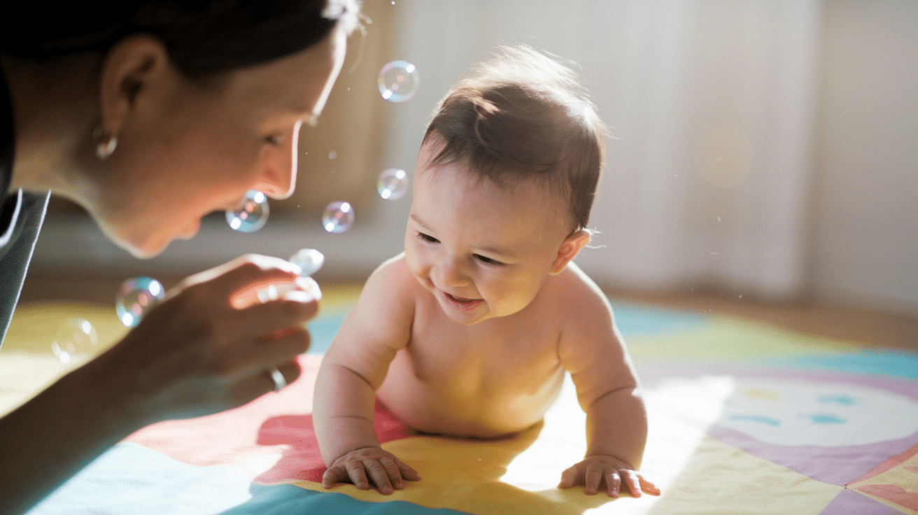 Blow gentle bubbles near your baby’s face during tummy time to capture their attention and help them develop focus. Bubbles can create a fun, light-hearted atmosphere during tummy time, making it more enjoyable for your baby.