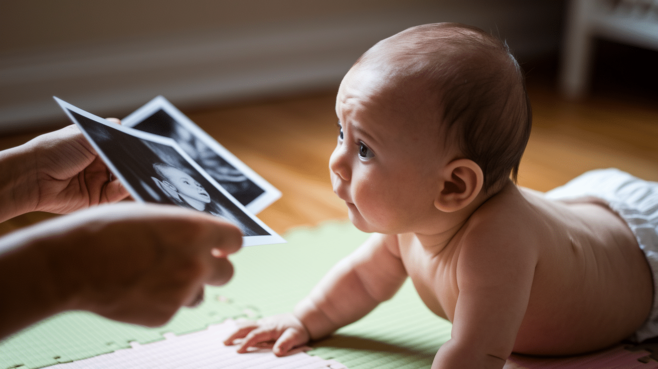 - Hold the pictures close enough to your baby’s face to engage their focus.
