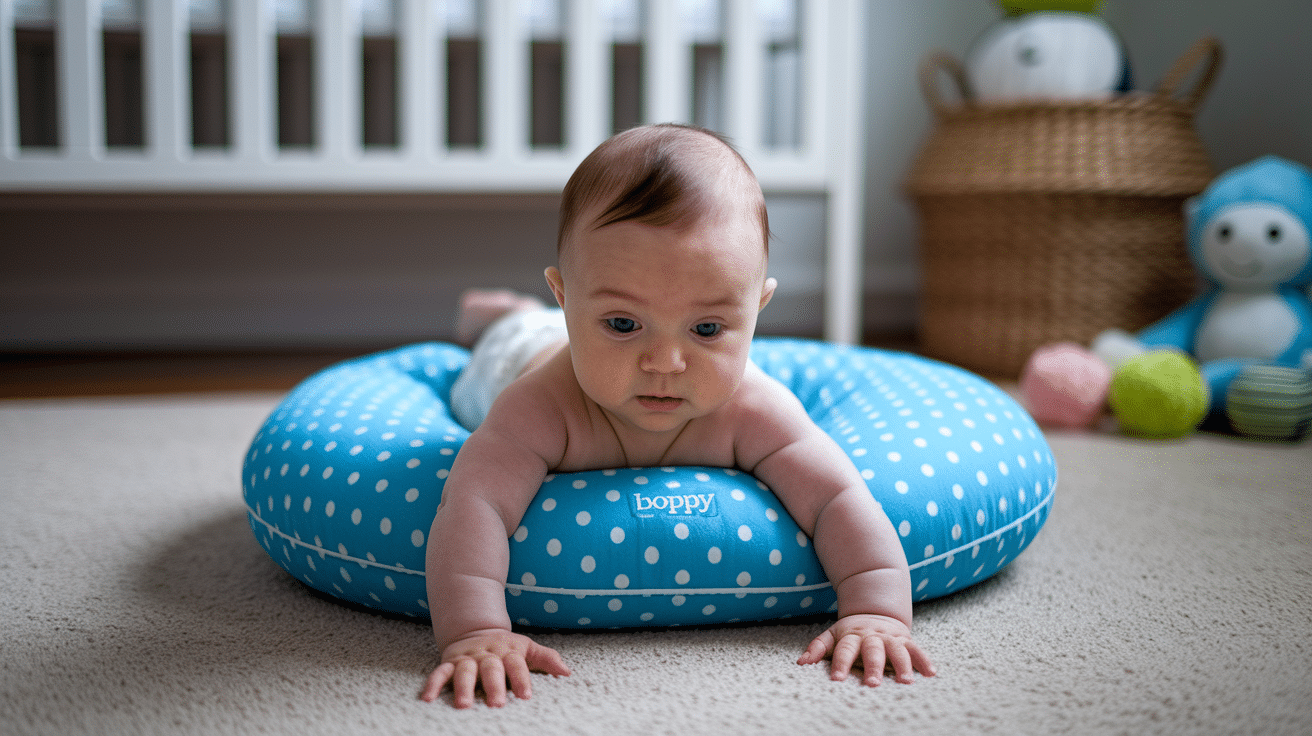 Use a Boppy pillow or a similar prop to support your baby during tummy time. The pillow provides extra lift, making it easier for them to lift their head. This allows your baby to feel more comfortable and helps them gradually develop the strength needed for full tummy time.