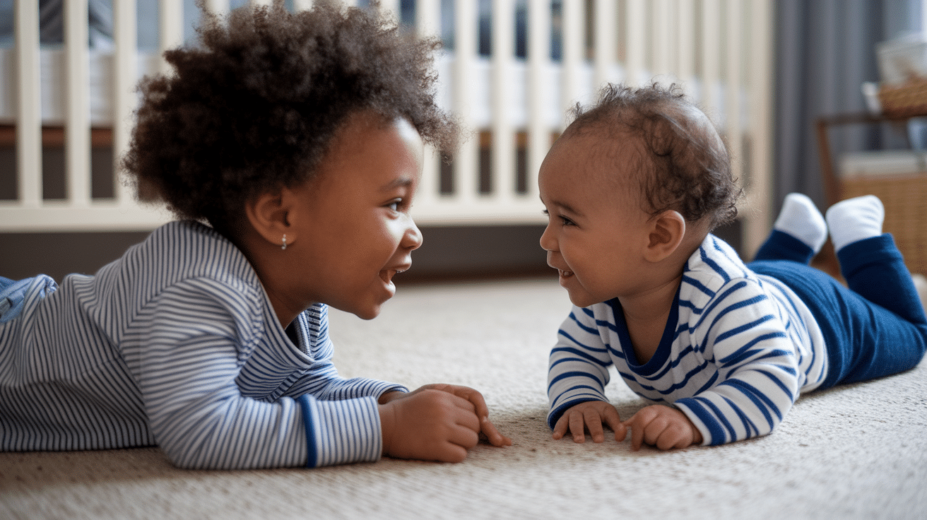 Have an older sibling join tummy time to encourage your baby to watch and interact, building a bond. Watching a sibling can motivate your baby to try harder to engage in tummy time, creating a positive social experience.