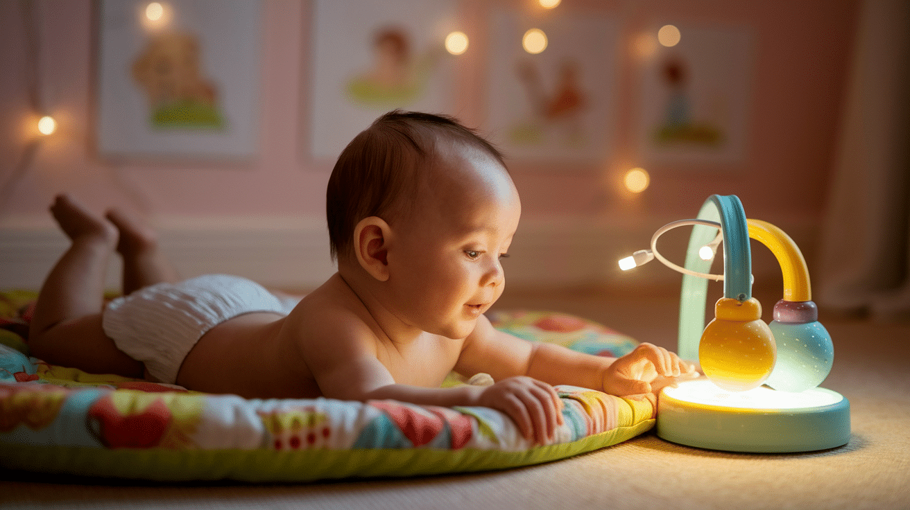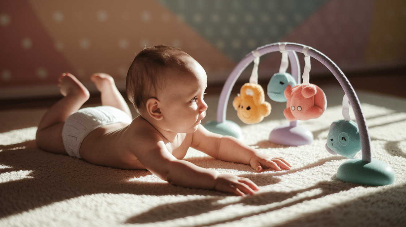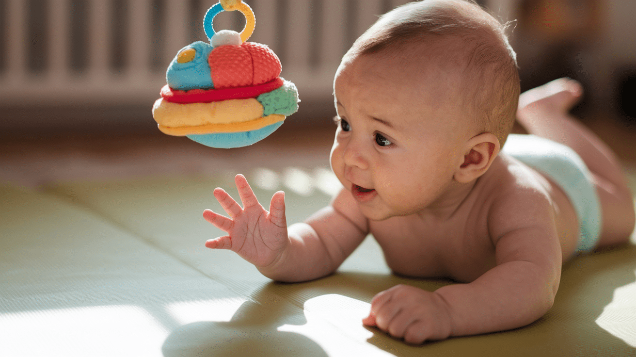 - Use engaging props: Colorful toys, mirrors, and rattles capture your baby’s attention. Place toys just within reach to encourage movement and exploration.