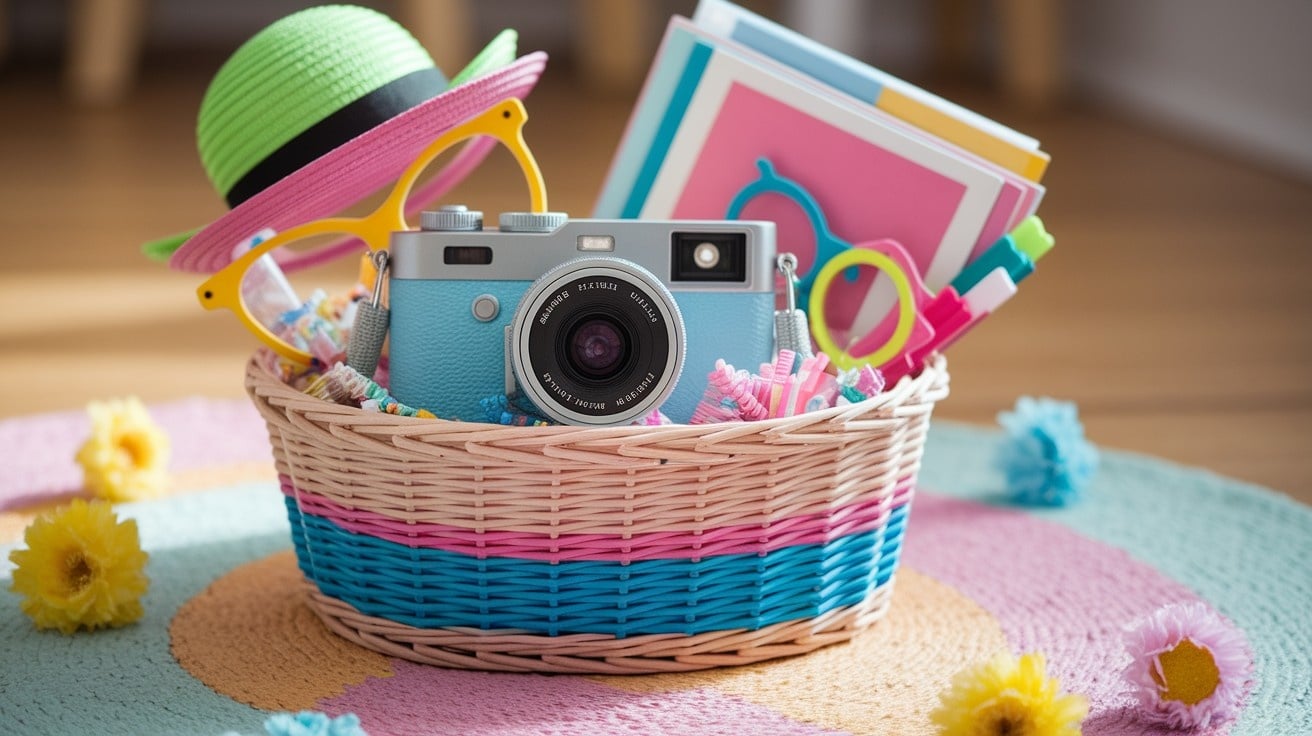 Tuck a kid-friendly camera, photo props, and scrapbooking supplies into a vibrant box. Kids can capture all their Easter memories through their lens.