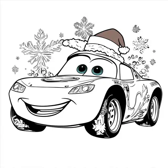 15. Christmas Themed Lightning McQueen Coloring Page
