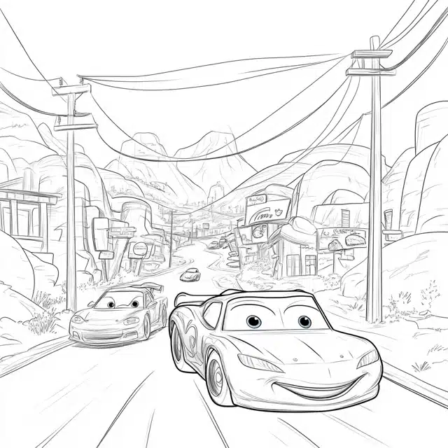 4. Lightning McQueen And Sally In Radiator Springs Coloring Page