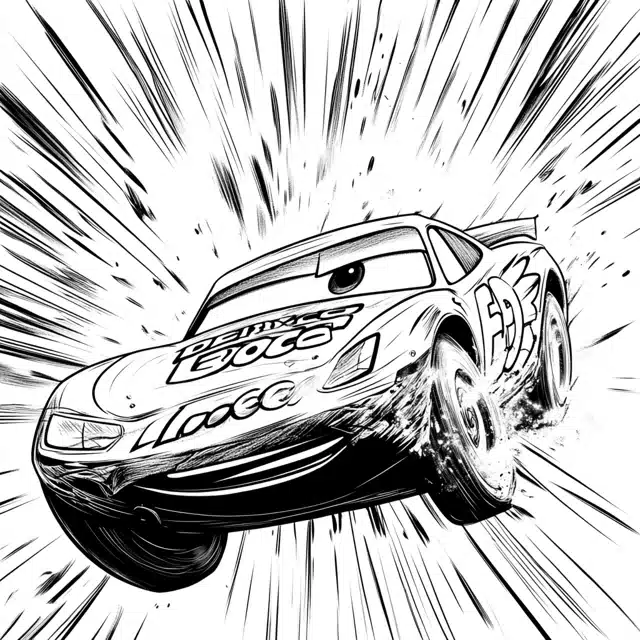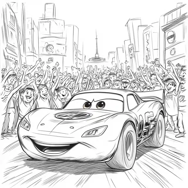 6. Lightning McQueen Showing Off To Crowd Coloring Page