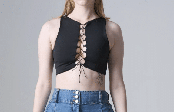 The lace-up crop top merges edginess with a touch of femininity. The lace-up detailing adds an interesting visual element that differentiates it from more basic styles.