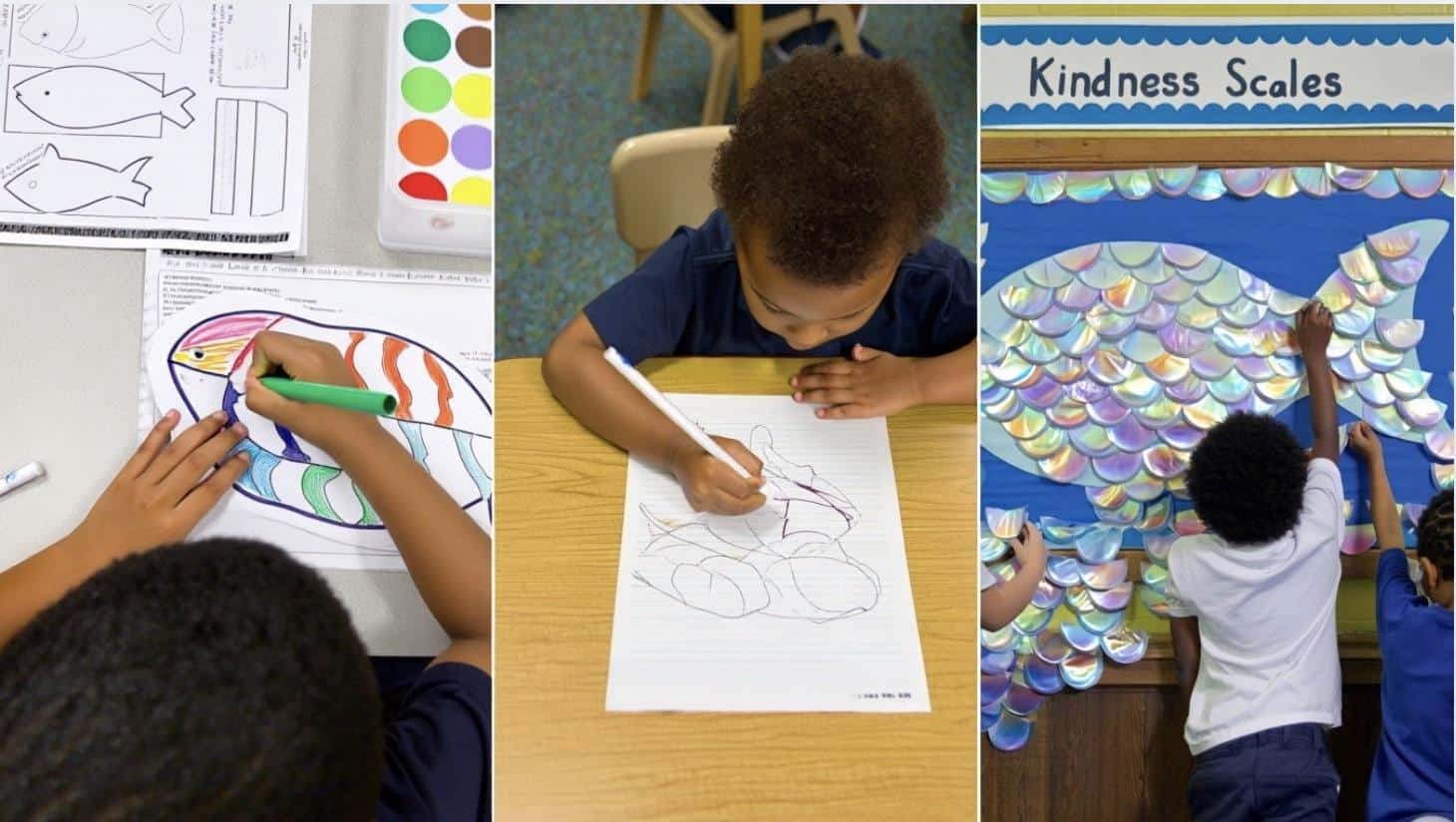 These scales are added to the fish, visually showing how kindness grows the classroom community.