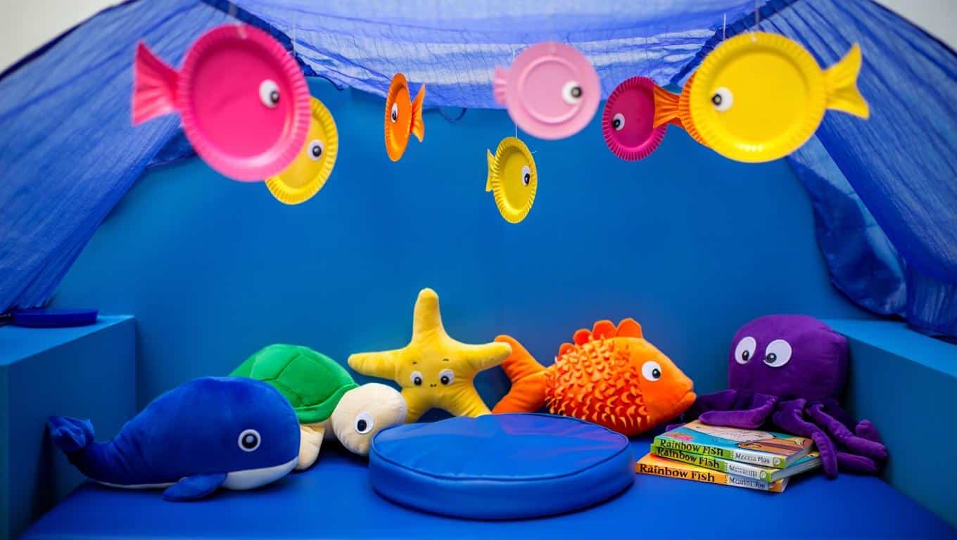 - Create a Reading Corner: Set up a special ocean-themed space with blue fabric, stuffed sea animals, and copies of The Rainbow Fish for independent reading.