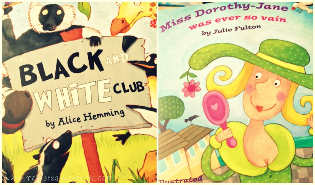 Last on our list of current reading favourites are The Black and White Club (by Alice Hemming) and Miss Dorothy Jane Was Ever So Vain (by Julie Fulton), which we were sent for review. Both these books are funny and carry a sweet message. They’re really easy to read and I think Frog loves them so much because they’re like the book version of comfort food. She often requests one or the other at bedtime, which is rather sweet really.