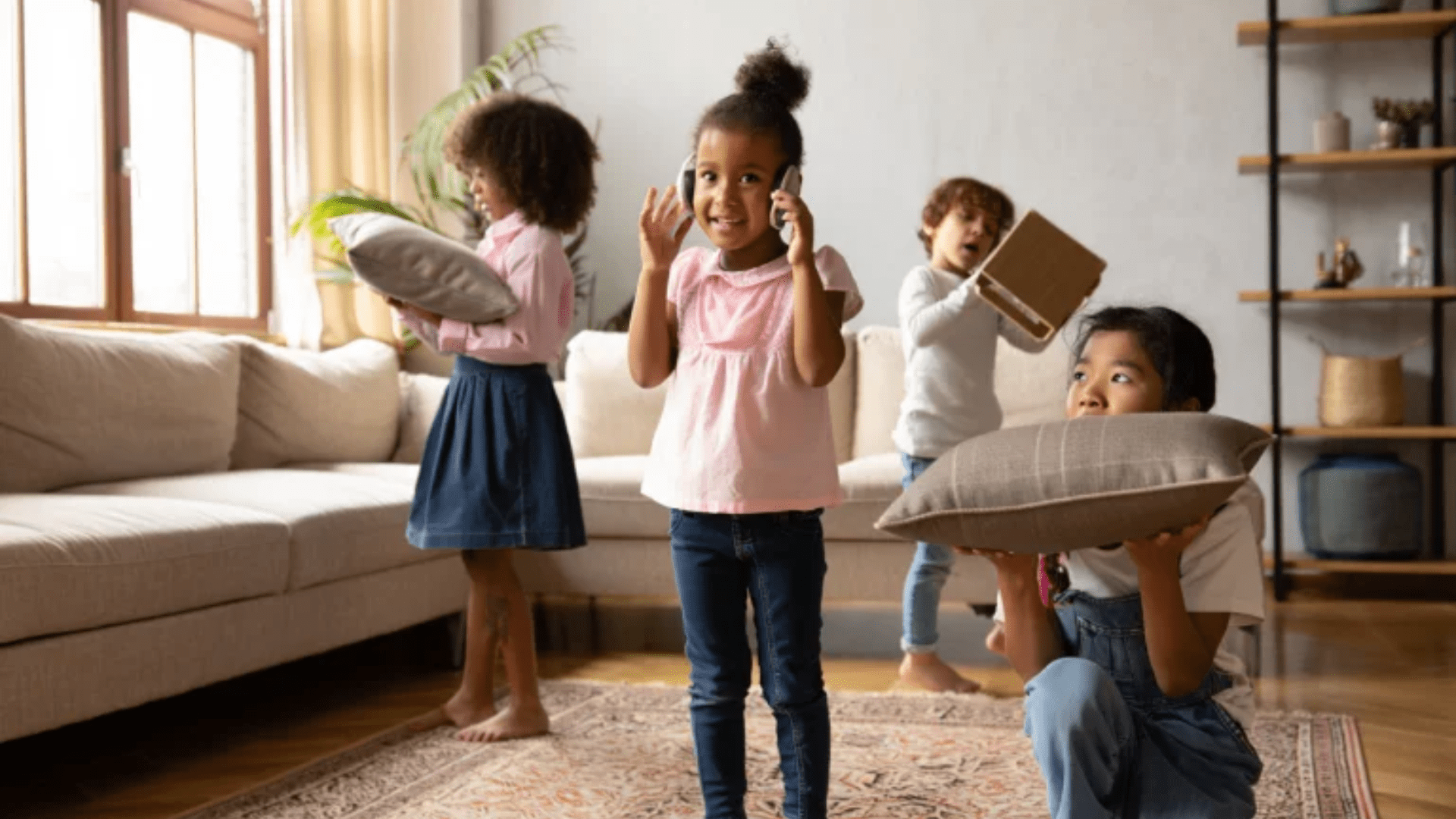Change your living space into a playing zone with cushions, hula hoops, and tunnels. Children navigate through challenges like crawling under tables, jumping over pillows, and balancing on lines of tape on the floor.