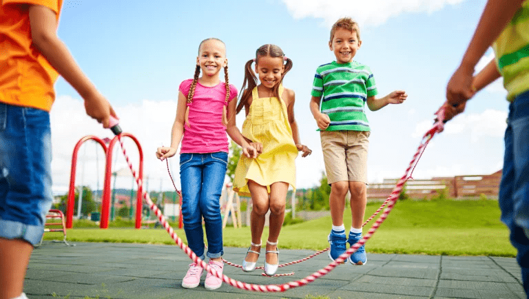Children learn basic jumping techniques and progress to more complex patterns and rhymes. This portable, high-energy physical activity helps them develop coordination, endurance, and rhythm.
